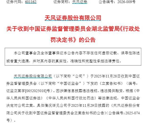 此外,天风证券同日公告,收到湖北证监局下发的行政监管措施决定书。